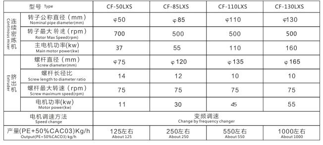 CF-50LXS連續(xù)式密煉機(jī)、CF-85LXS連續(xù)式密煉機(jī)、CF-110LXS連續(xù)式密煉機(jī)、CF-130LXS連續(xù)式密煉機(jī)
